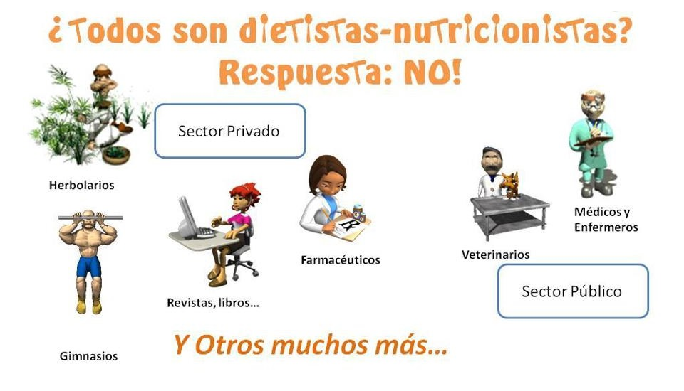 El desconocimiento generalizado de lo que es un Dietista-Nutricionista hace que los intrusos puedan campar a sus anchas en todos los ámbitos posibles, desde consulta privada, divulgando en los medios hasta lo que a mí personalmente más me duele, la sanidad pública, en la que profesionales de sanidad se ven abocados a dar consejo dietético deficiente al carecer de tiempo y formación específica.